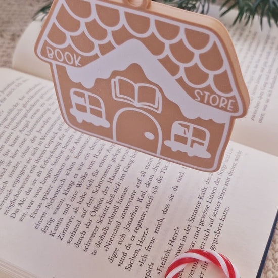 Das kleine Lebkuchenhaus als Bookstore-Form bringt cozy Christmas-Charme in jedes Wohnzimmer – perfekt für Buchliebhaber.
